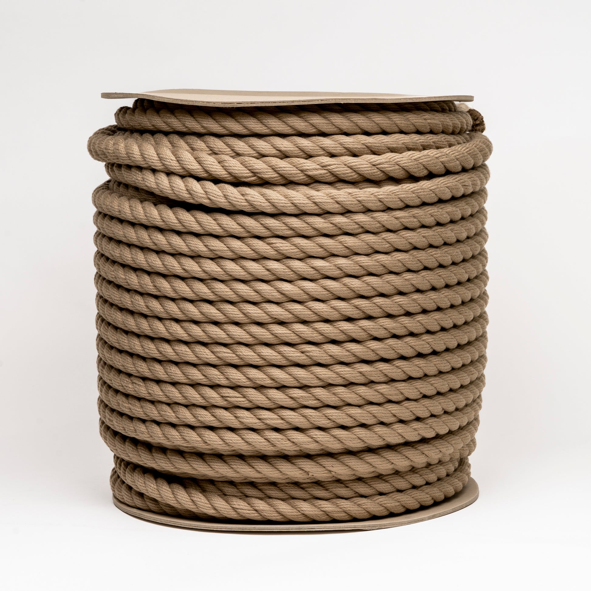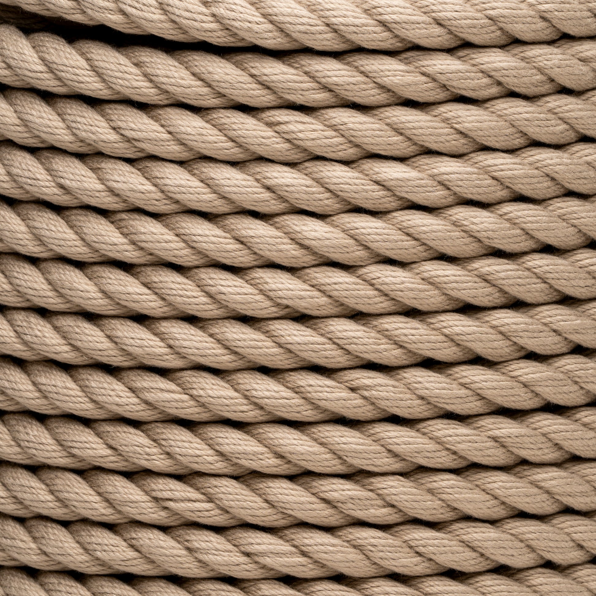 Corda in fibra sintetica di poliestere cotoniero a 3 legnoli, detta anche cima, fune o cavo. Disponibile nel color beige con lavorazione gherlino. Il poliestere cotoniero ha un'elevata morbidezza ed un effetto vellutato alla mano che la rendono particolarmente adatta come corrimano o come recinzione e delimitazione di spazi. Studiata per resistere alle intemperie è ottima anche per un utilizzo all'esterno.