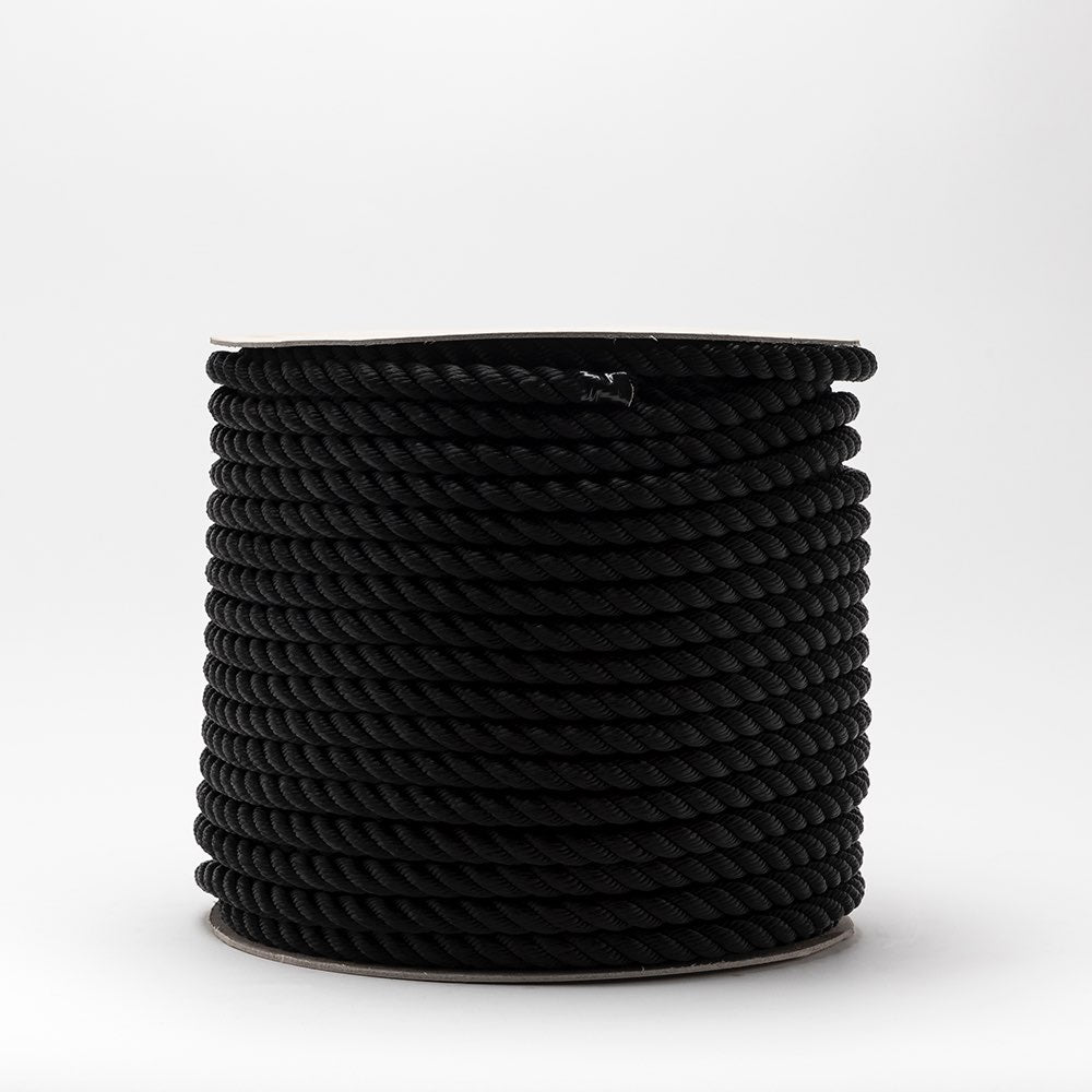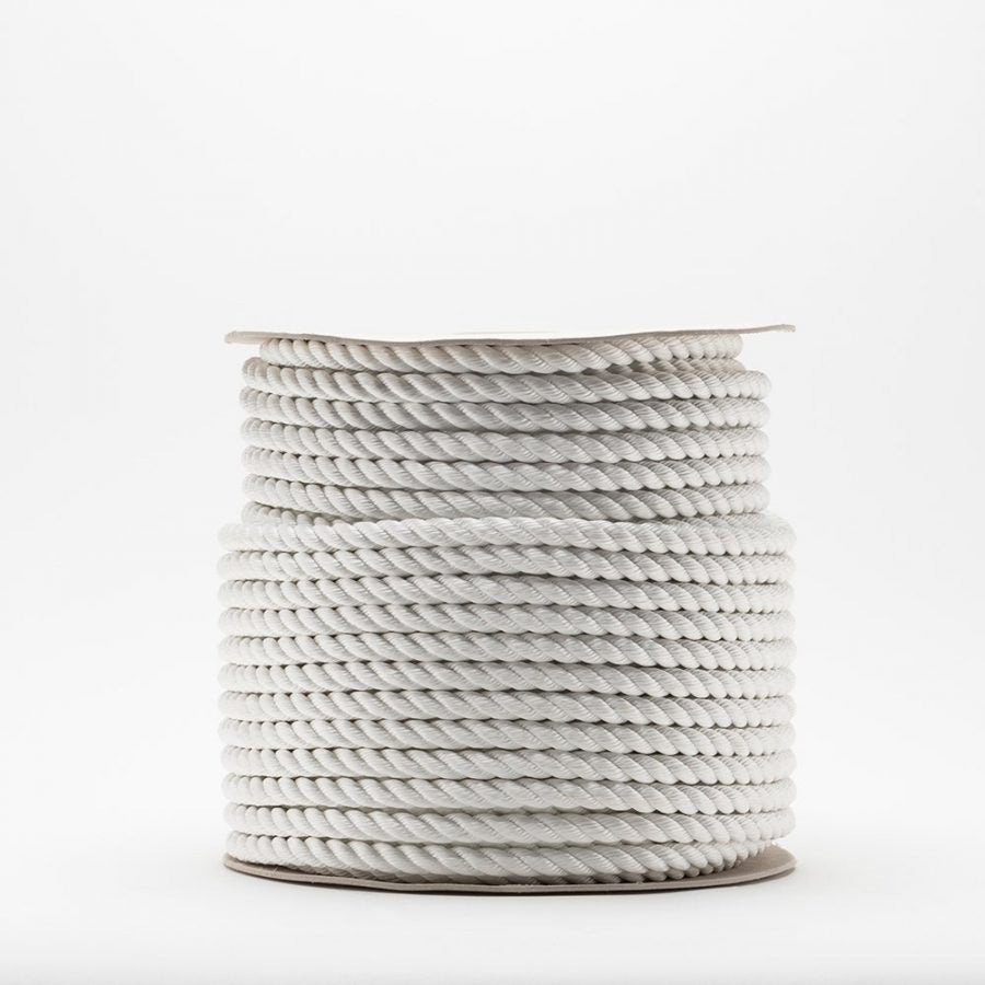 Corda in fibra sintetica di poliestere a 3 legnoli, detta anche cima, fune o cavo; spesso indicata con la sigla PE. Disponibile nei colori bianco e nero. Il poliestere ha un'elevata resistenza all'abrasione, alle pieghe e una buona resistenza agli agenti chimici e fisici. Adatto nel settore nautico, per ormeggi e passamaneria.
